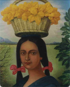 masters of Mexican painting as I did. I had the privilege of interviewing him not once, but eight, ten, fifteen, many times, the outstanding painter whose artlessness contrasted with his genius. I keep pleasant memories of the times when the master expressed his poetic subtleties and his ever wise remarks on one of his works, even in facing the new works. Owner of a great genius and admirable intelligence. Aguilera used to walk through the streets, always carrying a folded magazine in his hands for covering himself from the sun. Master Aguilera’s artistic vocation lasted for his lifetime. It was an elixir that he couldn’t stop drinking so as to become plentiful and happy. Luis Alfonso Méndez Lara Now, at last, his private collection goes out to the light so that the world may know about it, we shall have the opportunity to admire his paintings, that remained hidden, as a valuable treasury, jealously kept by his creator. Master Aguilera’s work provides the spiritual nourishment so necessary for the human being, mainly in this material, alienating age of universal anxiety. Salvador Almaraz His major events were the paintings made by him, and his great achievement, to see his vocation fulfilled. Self-learned, he became an authority on his job having the heart of a poet and the fantasy of an original artist. In some of his main works, the mystic quantity turns into sensuality, like in Outshine©; (1962) where a woman with a half veil in her face and with a crown of white casahuate flowers, appears absorbed in ecstasy in the middle of the every day rush. In the same way, other symbolic figures of men and women, angels and children, saints and sinners range from the worldly and the celestial, the reality and the fantasy, as if the painter’s religious features were made up of the every day living and such a living was absorbed by faith and fantasy. Jose Dolores Aguilera catches the super-earhtly in its full nature and with very precise realistic details. He painted murals in different churches of the central region and in other places that witness the art that takes miracles away from the anti-natural and ecstasy away from the morbid, due to the fact that under Aguilera’s talented hand, visions, illusions, and chimeras turn into something universally human. This is best regarded on masterpieces like Eucharistic Congress© (1940), Mater Dolorosa© (1945), The Beggar© (1945), Boy playing the Flute© (1950), Squash Blossom woman seller© (1960), Ensoñación© (1960’s) The Floating Marina© (1963), The Scribe© (1970) Painting a Muse© (1980), and in other paintings. Through eight decades of work, if Aguilera is considered to have started drawing since he was a kid, the size of his paintings changed, his plastic elements arrangement flourished, his color enriched and even his artistic writing transformed as time went by, this evolution reveals a strong expression painter who imposes a supernatural and fantastic psychic situation to the audience so that they may solve it up, to the extent allowed by their imaginative and emotional skills. Aguilera’s great success is due both to his talent for catching symbolic shapes and to the sensitivity of the public who understands and interprets them.